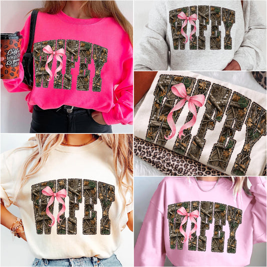 Camo Pink Bow Wifey Tee/Sweatshirt